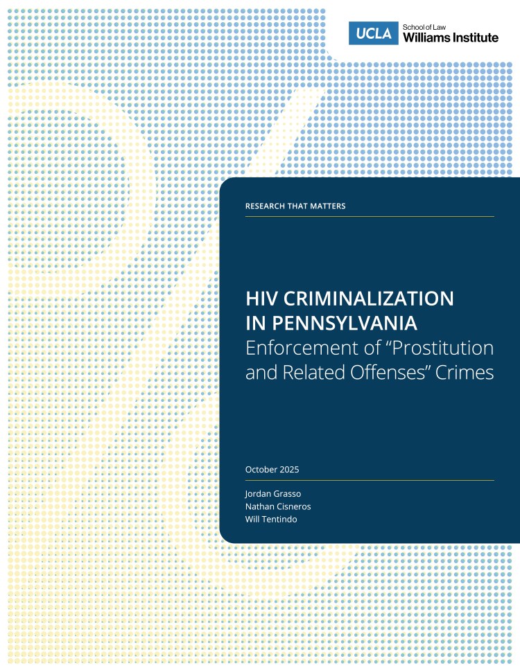 Grasso, Jordan, Nathan Cisneros, and Will Tentindo. 2025. HIV Criminalization in Pennsylvania: Enforcement of ‘Prostitution and Related Offenses’ Crimes. Los Angeles, CA: The Williams Institute, UCLA School of Law.